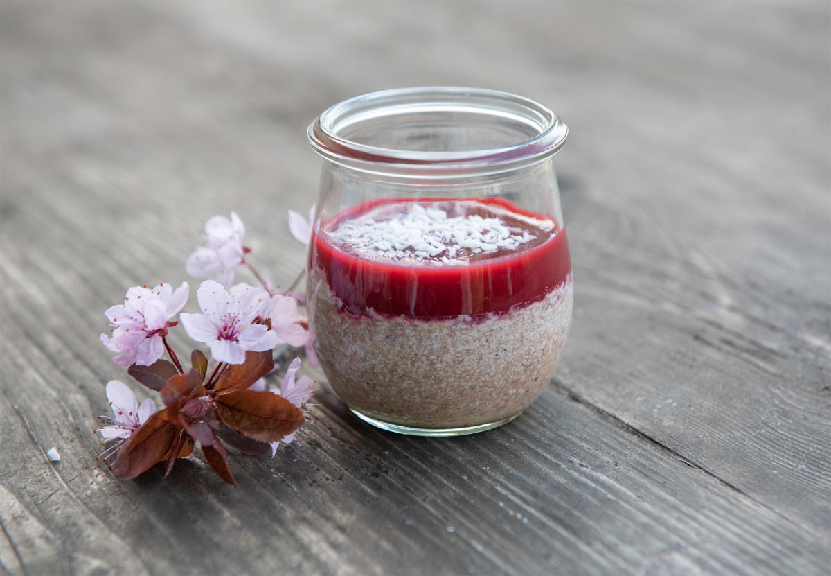 • Ein paar Kokosraspeln zur Deko darüber verteilen. Wer mag kann auch frische Himbeeren oder andere Beeren verwenden.