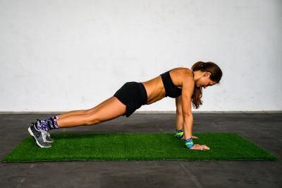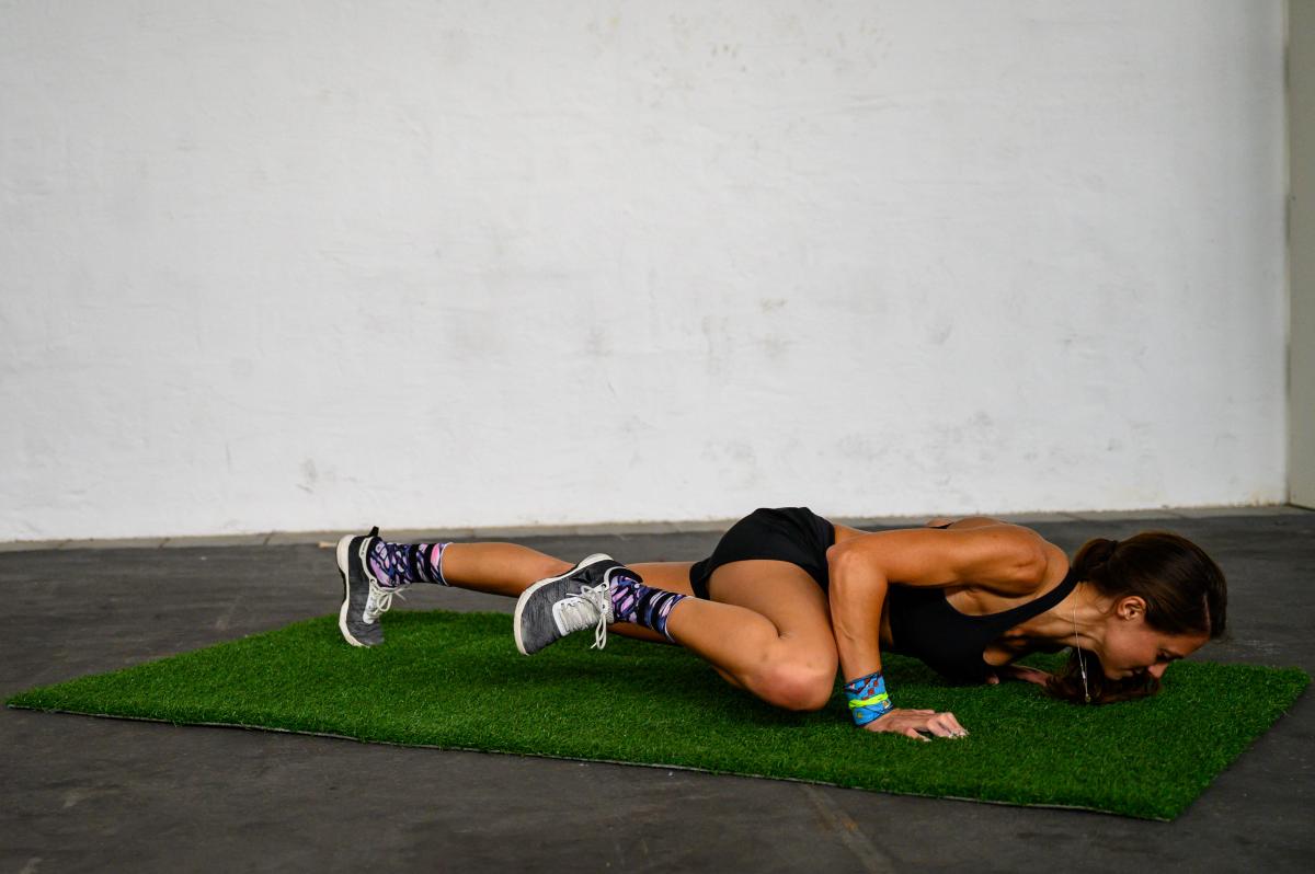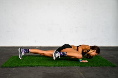 Begebt euch in die traditionelle Liegestützposition. Lasst euch auf den Boden sinken und führt euer rechtes Knie an euren rechten Ellbogen. Haltet das Knie dabei vom Boden fern. Drückt euch danach wieder nach oben und bringt euer Bein in die Ausgangsposition zurück. Wiederholt den Vorgang dann mit dem anderen Bein.