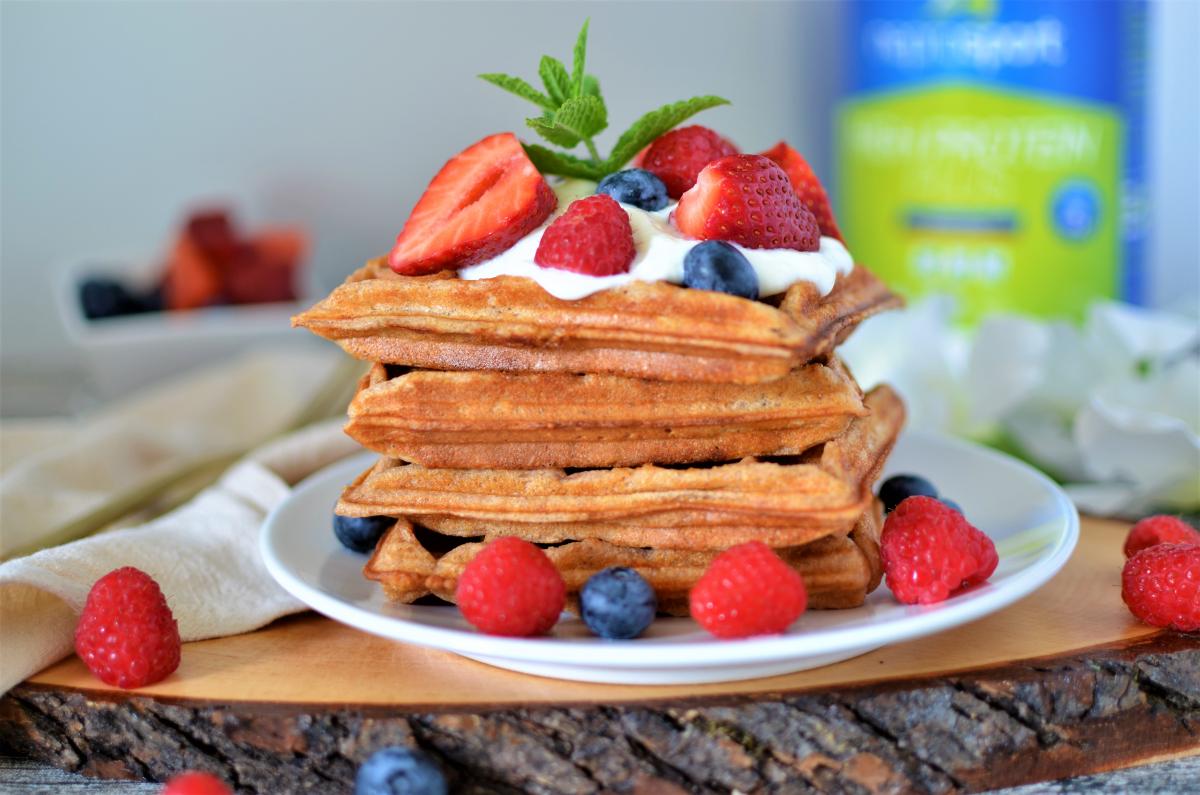 Lust auf etwas Goldbraunes und Knuspriges zum Frühstück? Dann sind diese gesunden Proteinwaffeln genau das Richtige für euch! Je nach Wunsch könnt Ihr sowohl normales als auch glutenfreies Mehl als Grundlage für diese köstlichen Waffeln verwenden, sodass sie perfekt in euren individuellen Ernährungsplan passen. Macht am besten gleich die doppelte Portion, damit Ihr die Reste als leckeren Snack Zwischendurch genießen könnt! Und falls Ihr das Rezept noch ein wenig aufpeppen möchtet, probiert es doch einfach mal mit diversen Toppings wie frischen Brommerbeeren, Joghurt oder gehackten Nüssen!