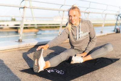 Laura Marx - Profisprinterin - beim Dehnen